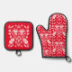Cupcake Baking Folk Art Oven Mitt & Pot Holder Set