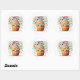 Round sticker is shown with a cute cupcake birthday confetti print.