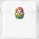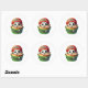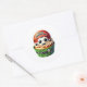 Round sticker is shown with a cute cupcake birthday soccer ball print.