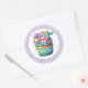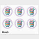Round sticker is shown with a cute cupcake birthday space mermaid print.