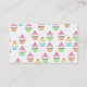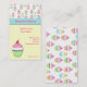 This pretty business card is perfect for any baker or bakery. It features a white top and yellow bottom. Tiny little cupcakes fill the white top and your text goes on the yellow bottom. A blue stripe runs through the centre. The back is covered in tiny colourful cupcakes!
