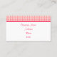 A fluffy pink cupcake and pink gingham decorate this business card! This business card is great for a bakery, etc...Customise the information to suit your needs. The designs are from original illustrations.