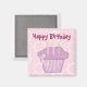 Tuck one in with a birthday card for a friend! Purple frosted cupcake with sprinkles and candles. A soft pink with white star shaped background.