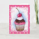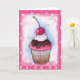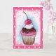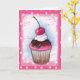 My oil pastel illustration of a yummy cupcake against a pink background dotted with images of wrapped gifts.