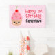 Introducing our delightful Personalised Cupcake Birthday Banner, the perfect addition to celebrate your little one's big day! This charming banner features a precious cupcake character set against a soft pastel pink backdrop, adding a whimsical touch to any birthday celebration. Use the Personalise feature to customise both the text and the birthday child's name to make it uniquely hers. Whether you're celebrating a first birthday or any special milestone, this banner is a wonderful way to add a sweet touch to the decor. The banner can be a cherished keepsake long after the celebration is over. Create unforgettable memories with our Personalised Cupcake Birthday Banner. Order now and watch your birthday girl's face light up with joy as she sees her name in lights on her special day!