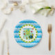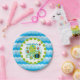 Cupcake Octopus 6th birthday party paper plates features a green and blue smiling octopus holding birthday cupcakes and balloons, text that reads Look Who's 6, and a wide background border of blue ocean waves! These cute octopus 6th birthday paper plates are perfect for the birthday party whether a big celebration or a small get together!