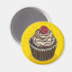 What a fun fridge magnet, a chocolate mocha cupcake with a red rose on top! The polka dottie yellow background is sure to brighten up your kitchen!