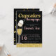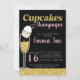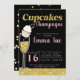 Cupcakes & Champagne Black & Gold Bridal shower Invitation
