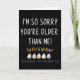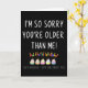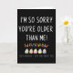 The card playfully reads, "I'm So Sorry You're Older Than Me. Just kidding I love that about you." This witty and cheeky message cleverly acknowledges the age difference between you and your best friend. It's a testament to your friendship's unique dynamic and your ability to embrace each other's quirks and milestones with love and laughter. The card's humour is sure to bring a smile to your friend's face and create a memorable and jovial birthday experience.