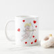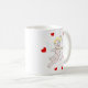 Coffee mug with cartoon illustration of cupid with hearts shooting an arrow