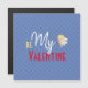 Be My Valentine has muted periwinkle blue hearts sprinkled over a bed of blue, and finished with a decorative text accompanied by young cupid.