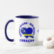 Stylish CURAÇAO Coffee Mug with CUSTOMIZABLE TEXT. The words read SMALL ISLAND BIG HEART and the CUSTOMIZABLE TEXT in the middle reads BEST SOCCER MOM EVER. Design shows Curacaoan flag inside a heart, with the map outline of the island on top. Perfect CURAÇAO 'underdog' soccer Coffee Mug when watching Dutch, national and international soccer football matches. Ideal show of patriotism during world soccer tournaments. Add a name and message for that special, personal touch. Buy matching couple tees or matching group shirts for the family.