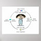 A funny cartoon of a medicated person wearing a nightgown and fuzzy slippers surrounded by a circle of pills. "Cures insomnia, causes upset stomach, cures upset stomach, causes itchy rash, cures itchy rash, causes depression, cures depression, causes insomnia." A humourous albeit depressing comic for anyone familiar with the circle of medication. This funny poster makes a cool gift for pharmacists, nurses, doctors and patients. Visit Jenn’s Doodle World for even more fun posters and weird gift ideas.