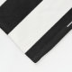 Blanket with a cute bunny and broad black and white stripes.