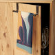 A black and white, retro-looking cat, resembling cats from the 1950's, it's yellow eyes open in curiosity creates a cute and charming kitchen towel.