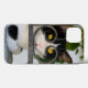 A cute bicolor piebald cat is looking attentively through a wrought iron fence, it seems as though she wears glasses frames. This case is a gift idea for pet and cat lovers. Photo taken by Katho Menden on a Greek islands.