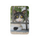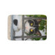A cute bicolor piebald cat is looking attentively through a wrought iron fence, it seems as though she wears glasses frames. This small bath mat is a gift idea for pet and cat lovers. Photo taken by Katho Menden on a Greek islands. http://www.zazzle.com/kathom_photo