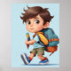 A curious and imaginative comic boy who loves learning and discovery. With bright eyes, he is dressed comfortably and ready to explore the world. Carrying a backpack filled with books, he is ready for adventures and exploration.