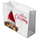 Curious Cute Funny Dog with Santa Hat Large Gift Bag