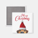 Cute Merry Christmas animal illustration: Curious dog wearing a Santa hat. Seasonal holiday greeting written in modern typography letters.