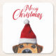 Curious Cute Funny Dog with Santa Hat Square Paper Coaster