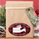 Dog lovers will enjoy this curious and playful Dachshund dog looking inside a holiday gift box, silhouette holiday sticker with buffalo plaid and editable text.
