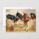Curious Dachshund Puppies and a Frog, Christmas Postcard