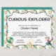 Celebrate the achievements of your young adventurers with the "End Of Year Curious Explorer Student Recognition Award." This beautifully designed certificate honours students who have shown exceptional curiosity and a passion for discovery throughout the school year. Perfect for teachers and parents looking to recognise and inspire the next generation of inquisitive minds. Durable and stylish, it's a keepsake they will cherish forever.
