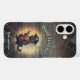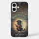 Curious pirate cat deciphers ancient mysteries iPhone 16 Case: A black cat dressed as a pirate deciphers an ancient document against a retro sunset.