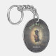 Curious pirate cat deciphers ancient mysteries Keychain: A black cat dressed as a pirate deciphers an ancient document against a retro sunset.