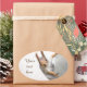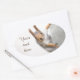 Closeup front view of a squirel on a tree trunk, looking straight at you. Funny and curious animal. Squirrel symbolises practicality, the necessity to make pleriminary provisions. Oval sticker. You can change or delete the image and the template text.