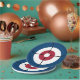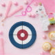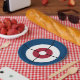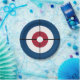 Paper plate featuring a curling house in red and blue. Perfect for your next curling party.