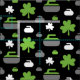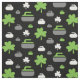 Fabric featuring a shamrock and curling rock pattern in green, white and grey on black background. Perfect for curlers and curling fans