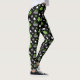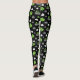 Leggings featuring a shamrock and curling rock pattern in green, white and grey on black background. Perfect for curlers and curling fans.