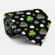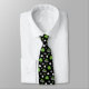 Necktie featuring a shamrock and curling rock pattern in green, white and grey on black background. Perfect for curlers and curling fans.