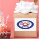 A design for anyone who loves the winter sport of curling. Two curling stones, in the circular target house of an ice rink.
