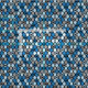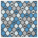 Fabric featuring an ogee tile pattern with curling rocks in shades of blue and grey on black background. Perfect for curlers and curling fans.