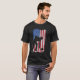 I give wanted to give this a 4 instead of a 5 because these Basic DARK T0shirts run unexpectedly SLIM or Narrow. Which is great if you do not have a potbelly, but I have a paunch. It isn't the shirt's fault that I've got a beer belly. The design and shirt itself is a quality cotton shirt. The color is more of a deep purple, but still a very pretty color. The Basic DARK T-shirts run a bit SLIMMER than the Basic Ts. The neck is a fraction narrower (or seems to be narrower) also. I'm a paunchy middle-aged woman and my neck is 12 inches (31cm) thick and the neckline fell about the same as in the photo of the man, and I had the desire to tug it a bit. So if you're a thick necked man or like loose shirts, be aware these are slimmer shirts. Once I get rid of my lockdown paunch it'll look great. The shirt washed well in cold water with no apparent bleeding. We don't have a dryer, so it hung dry. Did not shrink. Love the colors and the design. The design looks smaller on my shirt than it does on the model on-line. But still, it looks good on the shirt. The printing looks as it does on the model, just the size seems fractionally smaller. Washed garment in cold water, hung dry and design appeared unaffected.
