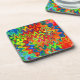 A set of six bright retro psychedelic cork coasters.