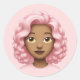 Curly Pink-Haired Emoji Classic Round Sticker