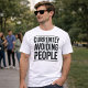 The strong lettering and simple layout create a modern graphic look that works perfectly with casual outfits and everyday wear. Its straightforward humour makes it especially appealing for introverts, remote workers, or anyone who occasionally prefers solitude over social chaos.