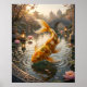 Graceful curry koi artwork featuring an elegant fish crafted from silky curry gradients, spice textures, herb flecks, rice pearl accents, and glowing saffron-gold tones. Gliding through a palace garden pond with lotus flowers, carved stone borders, bridges, lantern reflections, marble steps, and distant domes, this luxurious fantasy aquatic design feels serene and opulent. Perfect for bathrooms, kitchens, meditation rooms, Asian décor, or collectors of refined animal artwork.