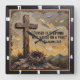This powerful wall clock features a rugged wooden cross standing on a textured hill, with a crown of thorns resting below, all beneath a sombre, stormy sky. The profound scripture, "Cursed is everyone who hangs on a tree." (Galatians 3:13), is prominently displayed. With its intense, textured artistry, this timepiece serves as a deep reminder of Christ's sacrifice, transforming a curse into a path of redemption and blessing for humanity.