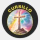 Cursillo Wood Cross With Rainbow and Clouds Classic Round Sticker
