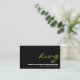 Make your monogram stand on its own merit with this striking business card. Any amount of initials or word in a bright green cursive makes an impact against rich black. The reverse prints customised text in white against the same green. Versatile, contemporary card for businesses with a creative edge including business services, retail, wholesale, marketing, advertising or companies in the entertainment field. Available in alternate colours with matching products.