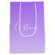 Cursive Script Name & Editable Light Purple Ombre Medium Gift Bag