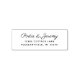 Simple, modern cursive script wedding return address self-inking stamp, featuring your names in formal black script and your address in sans serif font.