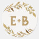 These curved branches gold wedding envelope seals are perfect for a modern wedding. The classic design features two metallic faux gold foil branches arranged to compose an elegant leafy wreath. Personalise the label with the initials of the bride and groom.