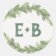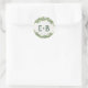 These curved branches greenery wedding envelope seals are perfect for a modern wedding. The artsy design features two abstract watercolor greenery branches arranged to compose a rustic leafy wreath. Personalize the label with the initials of the bride and groom.