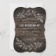 This curved branches wooden the wedding of invitation card is perfect for a modern wedding. The country chic design features the silhouette of two floral branches arranged to compose a rustic leafy wreath on a wood background.